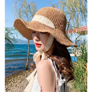 Mũ Cói ,Nón đi biển bằng cói vành rộng có nơ thời trang