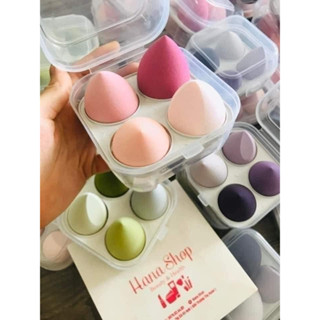 Hộp 4 mút trang điểm - Mút tán kem nền có hộp nhựa đựng tiện dụng