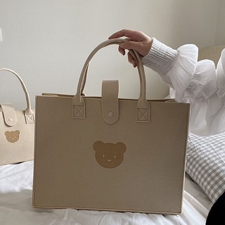 Túi Xách Vải Nỉ Màu Trơn Cỡ Lớn Hình Gấu Đa Năng Màu Sắc Đơn Giản