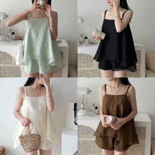 SET bộ áo 2 dây tơ nhún dáng xòe kèm quần sooc