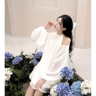 Đầm chuông trễ vai tay phồng voan tơ 2 màu maiphuongbui / Đầm babydoll giấu quần bo gấu