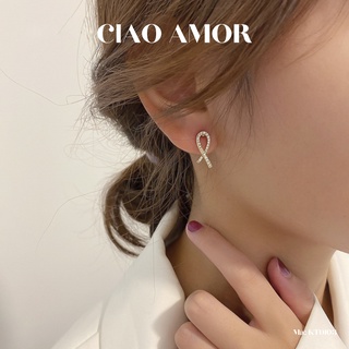 Khuyên tai nữ, Bông tai nữ bạc 925 ôm tai vòng nơ tròn đính đá ngọc nhỏ Trang sức Ciao Amor - KT0458