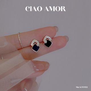 KT0452-Khuyên tai nữ, Bông tai nưc bạc 925 lớp vuông đen đính ngọc đơn giản thanh lịch Trang sức Ciao Amor