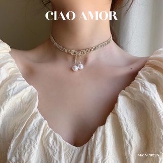 Dây chuyền nữ, Vòng cổ lấp lánh tiểu thư lấp lánh dự tiệc ngọc đính nơ dài Trang sức Ciao Amor - KT0410
