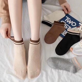 Vớ Cotton Thể Thao Cổ Vừa Kẻ Sọc Dọc Màu Kẹo Đen Phong Cách Nhật Bản Thời Thượng Cho Nữ