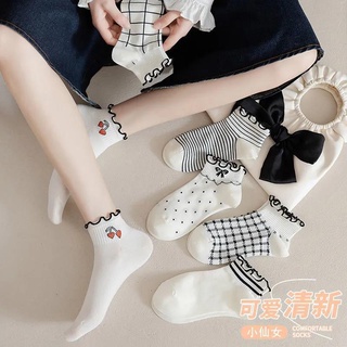 Vớ Cotton Cổ Vừa Họa Tiết Kẻ Sọc Trắng Đen Phong Cách Lolita Thời Trang Xuân Hè Cho Nữ