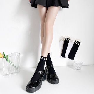 Vớ Nhung Mỏng Đính Ngọc Trai Màu Trắng Đen Phong Cách Nhật Bản Thời Trang Mùa Hè Cho Nữ
