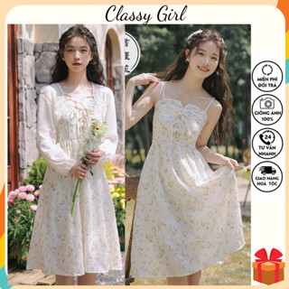 Váy 2 dây tiểu thư dáng xoè ClassyGirl kiểu hoa nhí siêu xinh đầm bánh bèo Ulzzang cao cấp đi chụp ảnh, dự tiệc