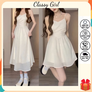 Đầm hai dây Eo Cao Cổ V ClassyGirl Phong Cách Hàn Quốc Váy Hai Dây Tiểu Thư Sang Trọng Kiểu Pháp Màu Trơn
