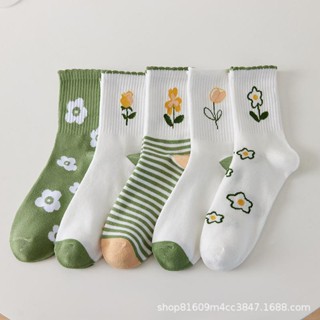 Classy Tất cổ thấp, vớ cổ thấp màu kem họa tiết hoa ngẫu nhiên G1362
