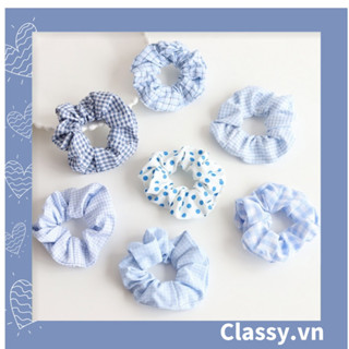 Scrunchies buộc tóc nhiều họa tiết; tông màu xanh biển nữ Classy tính thanh lịch PK706