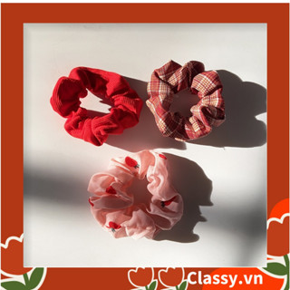 Scrunchies buộc tóc nhiều họa tiết; họa tiết tông màu đỏ nữ Classy tính thanh lịch PK710