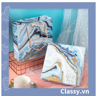 XÉ LẺ túi giấy Classy hoặc Hộp quà gấp kích thước 30,5x22x10cm quà tặng hoạ tiết màu xanh blue Q754