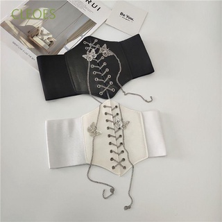 Thắt lưng da PU bản rộng phối dây xích mặt hình bướm phong cách Hàn Quốc cá tính dành cho nữ