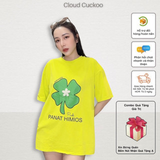 Áo Thun Nữ Dáng Rộng Hình Hoa Xanh 4 Lá Đính Hoa Cườm Trắng - Mã Số: AT92763