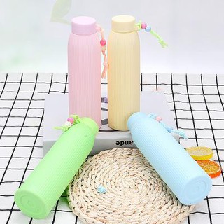 Bình nước pastel có sọc kẻ 300ml BN35 giữ nhiệt thuỷ tinh bọc nhựa