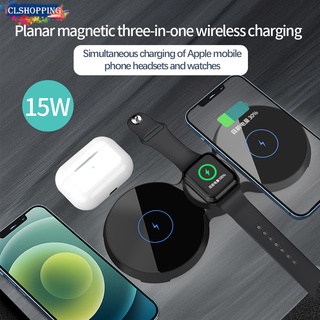 Đế Sạc Nhanh Không Dây 15W 3 Trong 1 Có Nam Châm Cho iPhone 13 12 11 X XS Pro Max Airpods Apple iWatch Samsung S21 S20