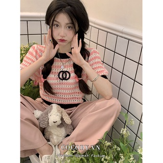 Cocory vn Áo Thun Tay Ngắn Dáng Ôm Họa Tiết Kẻ Sọc Quyến Rũ Thời Trang Mùa Hè Mới Cho Nữ