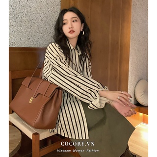 Cocory vn Áo sơ mi nữ tay dài kẻ sọc thời trang Hàn Quốc
