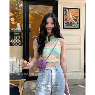 Cocory vn Áo Tank Top Dệt Kim Sát Nách Cổ Tròn Hoạ Tiết Kẻ Sọc Cầu Vồng Thời Trang Mùa Hè Cho