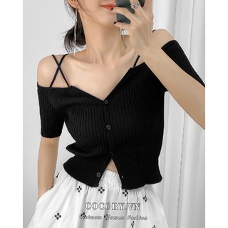 Cocory vn Áo 2 dây dệt kim dáng ôm thời trang hè cho nữ