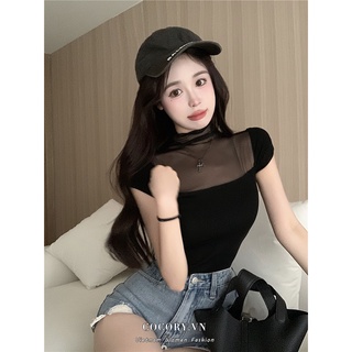 Cocory vn Áo Thun Tay Ngắn Cổ Lọ Phối Lưới Thời Trang Mùa Hè Quyến Rũ Cho Nữ