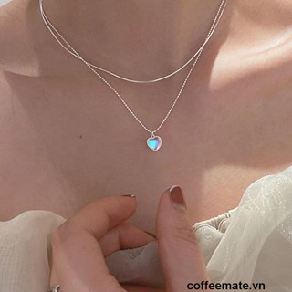 【coffeemate】⚡ Vòng cổ bạc mặt dây hình trái tim đinh đá mặt trăng đơn giản thời trang
