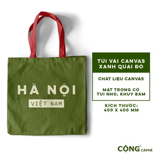 Túi vải canvas Cộng Cà Phê xanh quai đỏ
