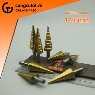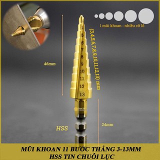 Mũi khoan 11 bước thẳng 3-13mm HSS Tin chuôi lục