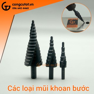 Mũi khoan tháp 10 bước thẳng 4-22mm HSS phủ Titanium chuyên khoan inox