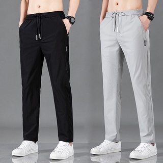 Quần Dài Thể Thao Dáng Rộng Vải Lụa Lạnh Mỏng Co Giãn Thoáng Khí Nhanh Khô Thời Trang Mùa Hè Cho Nam
