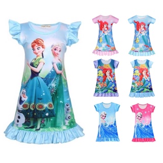 Đầm Ngắn Tay Họa Tiết Hoạt Hình Frozen Thời Trang Mùa Hè Dành Cho Bé Gái