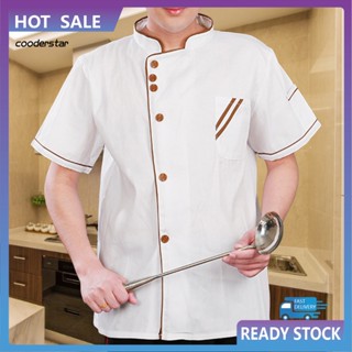 Áo Đồng Phục Đầu Bếp Ngắn Tay Cổ Đứng Phối Màu Cá Tính Thoáng Mát Cho Nam Nữ