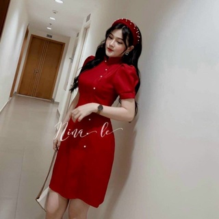 ĐẦM ĐỎ có đệm ngực CỔ VUÔNG TAY PHỒNG TÀ LỆCH