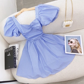 Đầm yếm tay phồng dáng xoè