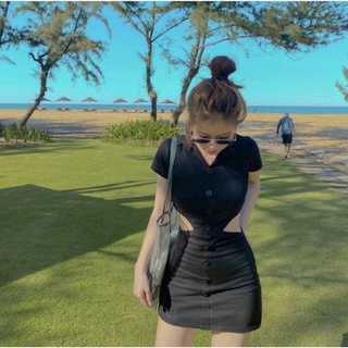 set áo lệch vai xếp eo + chân váy xoè