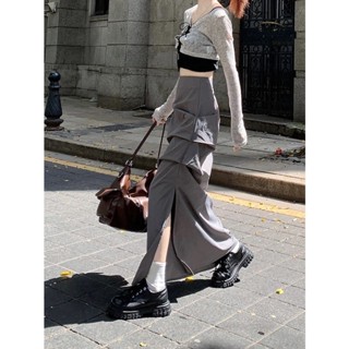 Chân váy midi xẻ tà dáng dài cạp cao cách điệu dập ly hiphop Ulzzang cá tính siêu hot ❤️