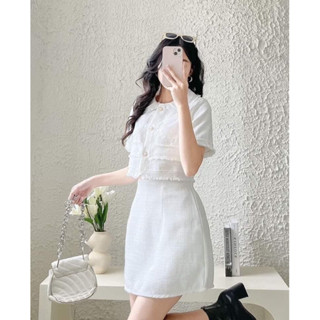SET TRẮNG TRỄ VAI TAY LOE CÓ DÂY CHIẾT EO + CHÂN VÁY JEAN