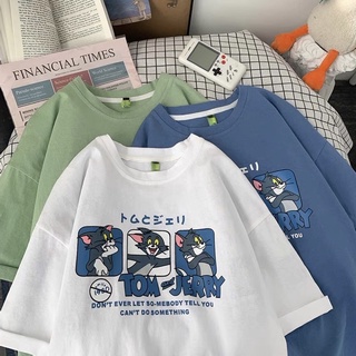 Áo thun tay lỡ nam nữ, áo phông unisex form rộng chất cotton mát mịn thấm hút mồ hôi in hình mèo tom