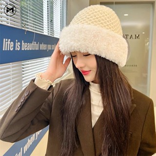 Mũ Lưỡi Trai Dệt Kim Phối Lông Thỏ Co Giãn Giữ Ấm Phong Cách Hàn Quốc Thời Trang Cho Nữ