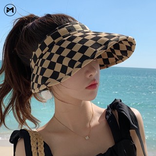 Nón Rộng Vành Hở Đầu Họa Tiết Caro Trắng Đen Phong Cách Hàn Quốc Cho Nữ