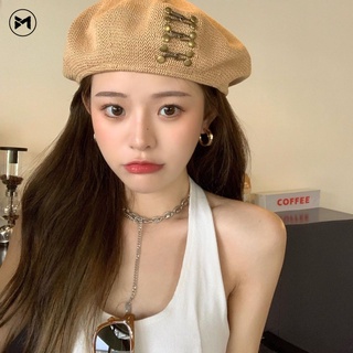 Mũ Beret Vải Mỏng Thoáng Khí Phối Khóa Đồng Phong Cách Vintage Cho Nữ