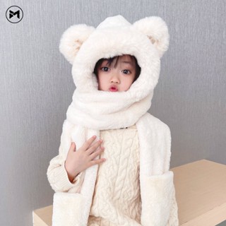 Set 3 Món Nón + Khăn Choàng Cổ + Tai Gấu Bằng Vải Bông Dễ Thương Thời Trang 2022 Cho Bé 2-8 Tuổi