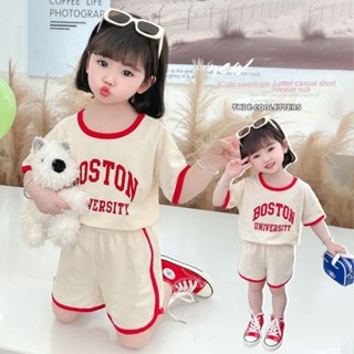 Set Đồ Thể Thao Hai Món Vải Cotton In Chữ Thời Trang Hè Cá Tính Cho Bé Gái