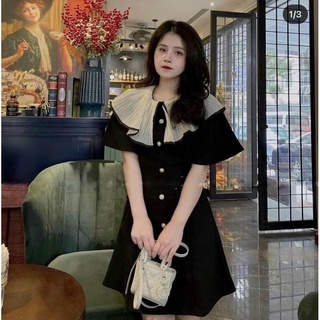 Đầm đen phối cổ peter trắng kết nút ngọc giả ( có bigsize )