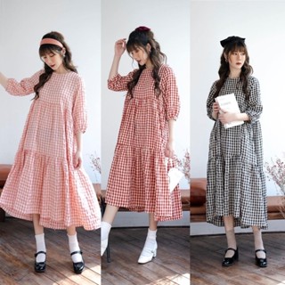 Đầm midi (có bigsize) phối trắng nơ cổ 🥰🥰🥰