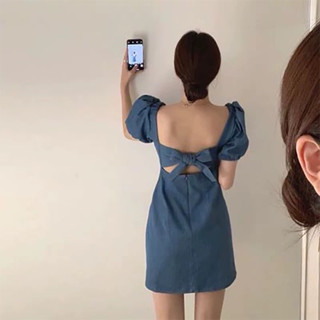 Đầm jean Bigsize cổ vuông thắt nơ lưng 🥰