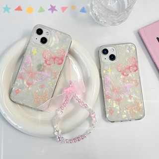 Ốp Điện Thoại Chống Sốc Hai Mặt Họa Tiết Bướm Kèm Dây Đeo Cho IPhone 14 13 12 11 Pro Max