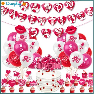 Cr Set Bong Bóng Lãng Mạn Kèm Cờ Kéo Trang Trí Bánh Kem Cho Tiệc Cưới / Valentines