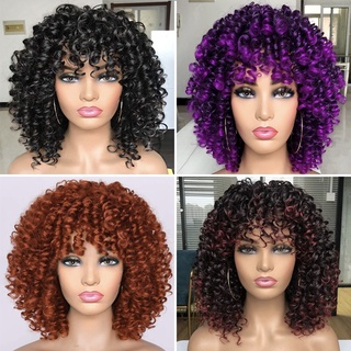[Hàng mới về] Tóc giả Afro kèm mái ngắn gợn sóng tổng hợp thời trang phụ nữ